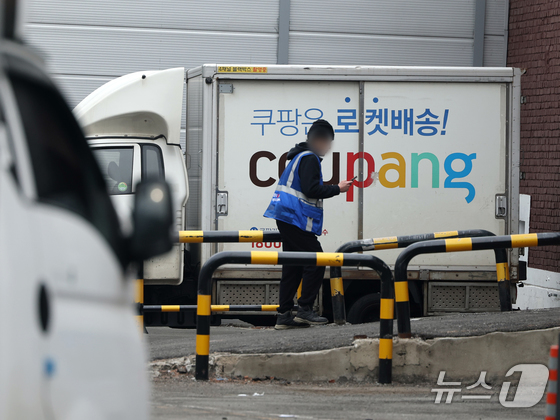 10일 서울 시내 쿠팡 물류센터에서 직원이 발걸음을 옮기고 있다. 2026.2.10 © 뉴스1 황기선 기자