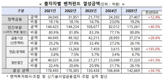 민간 출자 확대는 △연금·공제회(165.0%) △일반법인(61.5%) △금융기관(28.6%) 증가가 이끈 것으로 분석된다.