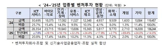 2024년과 비교할 때 투자 금액 증가 폭이 가장 컸던 업종은 바이오·의료(5340억 원 증가), 증가율이 가장 높았던 업종은 게임(+69.4%)으로 집계됐다.