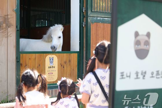 제8회 OBS 코리아컵&코리아스트린트 경주가 열린 7일 경기 과천시 렛츠런파크 서울에서 아이들이 승마체험을 하고 있다. 2025.9.7 © 뉴스1 김영운 기자