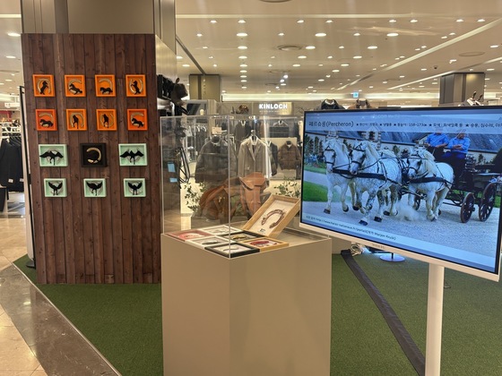현대아울렛 가산점에 전시된 승마 장구와 편자 장식. (한국마사회 제공)