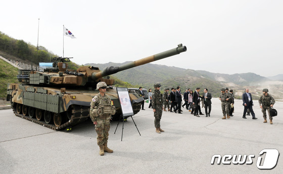 주한 외교대사관들이 K2전차를 살펴보고 있다. © 뉴스1 박세연 기자