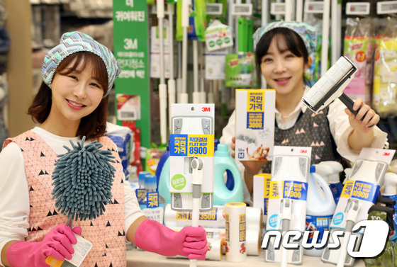 12일 오전 이마트 용산점 일상용품 매장에서 모델들이 각종 위생·청소용품을 소개하고 있다. (이마트 제공) 2020.2.12 © 뉴스1
