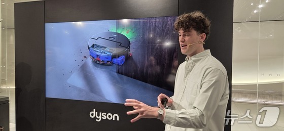 네이슨 로슨 맥클린 다이슨 시니어 디자인 매니저가 22일 여의도 더현대 서울 팝업스토어에서 다이슨 스팟앤스크럽(Spot+Scrub) Ai 로봇 청소기를 소개하고 있다. 2026.1.22/뉴스1