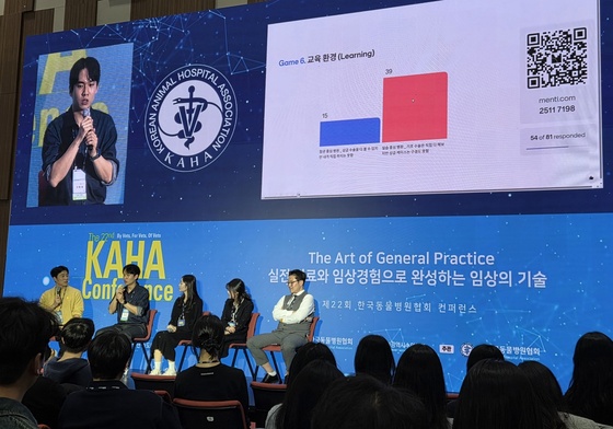 고막이 터질 듯이 짖는 강아지와 무는 고양이 중 진료하기 더 어려운 환자, 주 6일 근무 후 오후 6시 퇴근과 주 4일 근무 후 오후 9시 퇴근 중 선택하는 근무 형태 등 임상 현장의 현실을 반영한 질문들이 이어지며 현장의 공감을 얻었다.