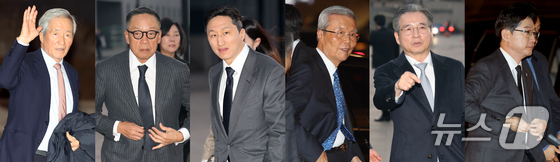 정몽준 아산재단 이사장(왼쪽부터), 정태영 현대카드 부회장, 정기선 HD현대 회장, 김종인 전 국민의힘 비상대책위원장, 김용범 청와대 정책실장, 김경수 대통령 직속 지방시대위원장이 25일 오후 서울 서초구 예술의전당 콘서트홀에서 열린 아산 정주영 서거 25주기 추모 음악회에 참석하고 있다. 2026.2.25 © 뉴스1 이광호 기자