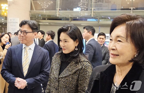 25일 오후 서울 서초구 예술의전당 콘서트홀에서 열린 아산 정주영 서거 25주기 추모 음악회에 참석한홍라희 삼성미술관 리움 명예관장(오른쪽부터), 이서현 삼성물산 사장, 김재열 국제빙상경기연맹(ISU) 회장.
