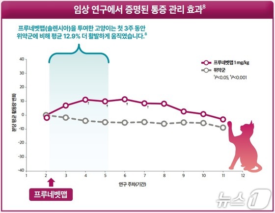 조에티스 관계자는 "솔렌시아는 수의사의 처방과 전문 관리 하에 동물병원에서만 월 1회 투여하는 주사제"라며 "고양이 골관절염 통증 완화의 새로운 패러다임으로 건강하고 행복한 삶을 유지하길 바란다"고 말했다.