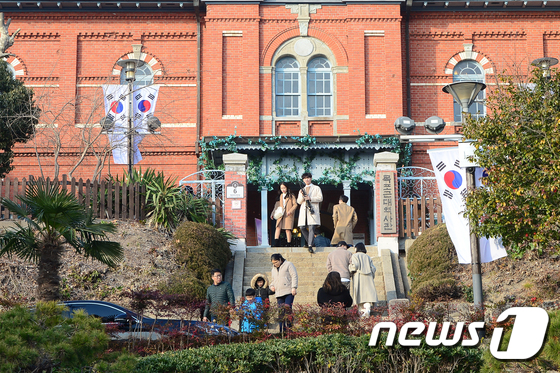 전남 목포시 대의동 목포근대역사관 1관 앞이 관광객들로 북적이고 있다. 1관은 일제강점기 일본영사관으로 쓰였고, 최근 한 드라마 촬영지로 알려지며 관광객 발길이 끊이지 않고 있다.© 뉴스1