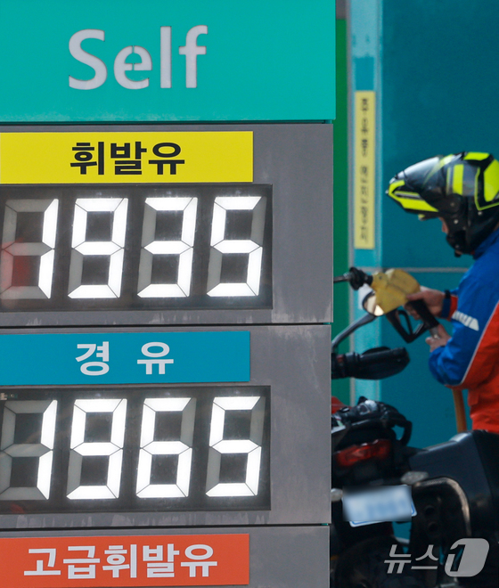 12일 서울의 한 주유소에 유류 가격이 표시돼 있다. 정부는 이번주 내 정유사의 공급가를 통제하는 방식의 석유류 최고가격제 시행을 앞두고 있다. 2026.3.12 © 뉴스1 이호윤 기자