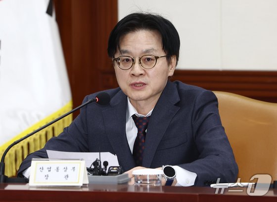 김정관 산업통상자원부 장관이 12일 오후 서울 종로구 정부서울청사 영상회의실에서 열린 '민생물가 특별관리 관계장관 TF 회의'에서 발언하고 있다. 2026.3.12 © 뉴스1 김민지 기자