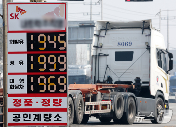 정부가 이번주 안으로 석유 최고가격제 시행을 앞두고 있는 가운데 12일 경기 평택시 포승읍 평택항 인근 주유소에 유류 가격이 표시돼 있다. 2026.3.12 © 뉴스1 김영운 기자