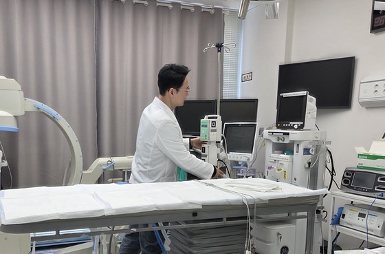 유제혁 원장이 수술실에서 AI 기반 마취 모니터링 시스템에 대해 설명하고 있다. © 뉴스1