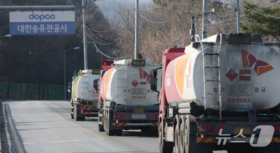 석유 제품에 대한 가격 상한제(최고가격제)가 전면 시행된 가운데 13일 경기 성남시 분당구 대한송유관공사 서울지사 인근 도로에 탱크로리(유조차)들이 운행하고 있다. 2026.3.13 © 뉴스1 김영운 기자
