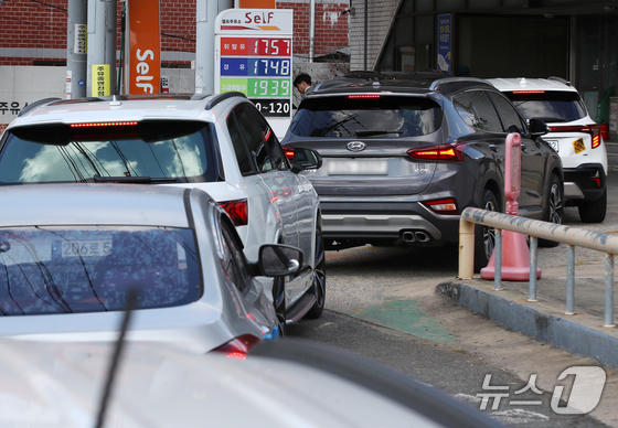 석유 제품에 대한 가격 상한제(최고가격제) 시행 첫날인 13일 경기 화성시 동탄구의 한 주유소가 주유 차량으로 붐비고 있다. 2026.3.13 © 뉴스1 김영운 기자