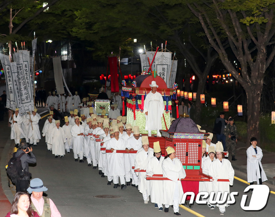 강원 영월군 시내 일원에서 제53회 단종문화제 단종국장 야간행렬이 펼쳐지고 있다. 2019.4.27 © 뉴스1