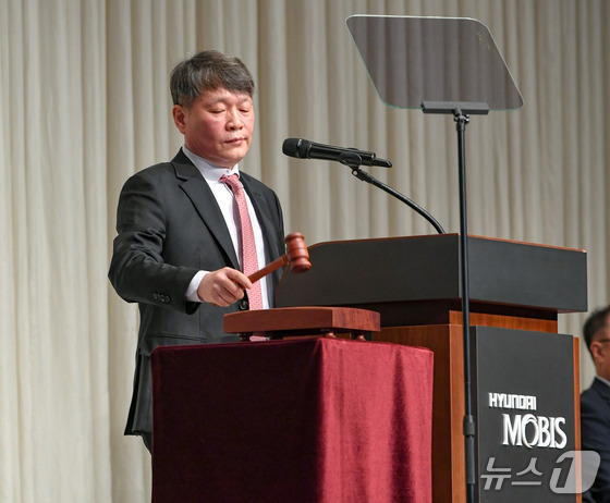 이규석 현대모비스 사장이 17일 서울 강남 GS타워에서 열린 제49기 정기 주주총회에서 안건을 의결하고 있다(현대모비스 제공). 2026.3.17.