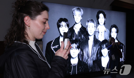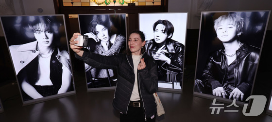 20일 서울 중구 신세계백화점 본점 헤리티지 뮤지엄에 마련된 ‘BTS POP-UP : ARIRANG’에서 아미(ARMY·팬덤명)가 기념 촬영을 하고 있다. 2026.3.20 © 뉴스1 박지혜 기자