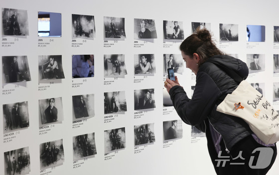 20일 서울 중구 신세계백화점 본점 헤리티지 뮤지엄에 마련된 ‘BTS POP-UP : ARIRANG’에서 아미(ARMY·팬덤명)들이 기념 촬영을 하고 있다. 2026.3.20 © 뉴스1 박지혜 기자