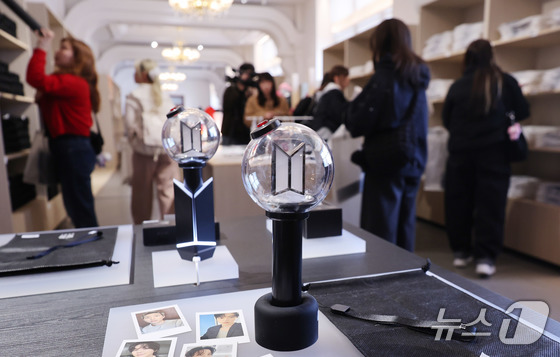 20일 서울 중구 신세계백화점 본점 헤리티지 뮤지엄에 마련된 ‘BTS POP-UP : ARIRANG’에 아미밤 4세대가 진열돼 있다. 신세계백화점은 하이브(HYBE)와 함께 방탄소년단(BTS) 완전체 컴백 분위기를 미리 체험할 수 있는 팝업스토어를 본점 더 헤리티지 4층에 마련했다. 2026.3.20 © 뉴스1 박지혜 기자