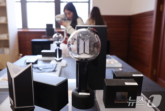 20일 서울 중구 신세계백화점 본점 헤리티지 뮤지엄에 마련된 ‘BTS POP-UP : ARIRANG’에 아미밤 4세대가 진열돼 있다. 2026.3.20 © 뉴스1 박지혜 기자