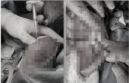 TPLO 수술 시 관절주사 애니콘주 적용하는 모습(왼쪽, 로얄동물메디컬센터 제공) © 뉴스1