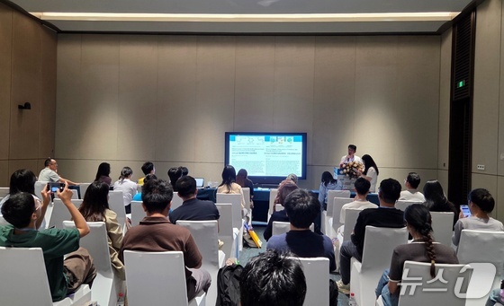 정설령 한국반려동물영양연구소 대표가 25일 중국 광저우에서 강의가 마치고 질의응답을 하고 있다. © 뉴스1