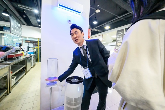 여름철 식중독의 주범인 '교차 오염' 방지 설루션도 눈길을 끌었다. 마트 카운터나 푸드코트에서 손님과 점주 사이의 접촉을 통한 균 전파를 막기 위해 자동 분사형 새니제닉 제품을 배치하고, 유통기한이 지나 효과가 떨어진 살균제를 실시간으로 관리하는 시스템을 선보였다.