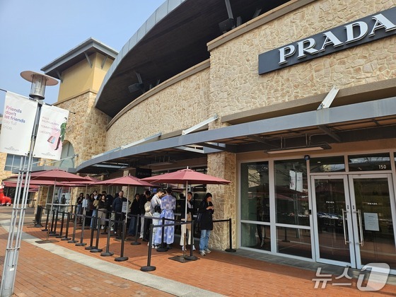 여주 프리미엄 아울렛 프라다 매장 앞에 줄 선 외국인들 2026.3.27 © 뉴스1 박혜연 기자