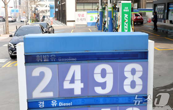 서울의 한 주유소에 휘발유 가격이 적혀 있다./2026. 3. 27 뉴스1 최지환 기자