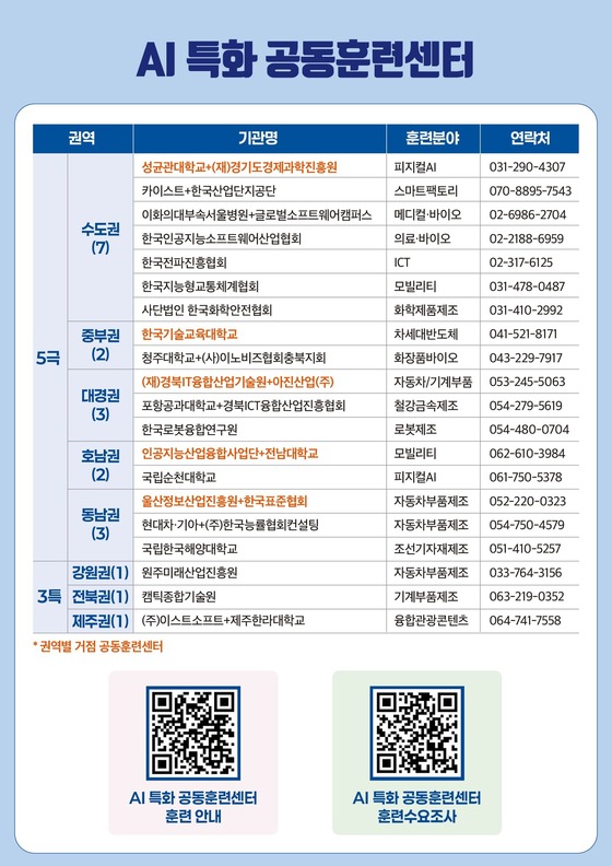 AI특화공동훈련센터 명단.(고용노동부 제공. 재판매 및 DB금지) 2026.3.28 /뉴스1