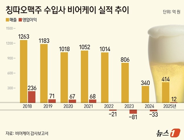 중국 맥주 브랜드 칭따오맥주의 '오줌 맥주' 논란 후유증이 국내 시장에서 여전히 이어지고 있다. 수입사 비어케이가 지난해 흑자전환에 성공했지만 매출은 전성기의 3분의 1 수준에도 못 미치며 완전한 회복과는 거리가 있다는 분석이 나온다.