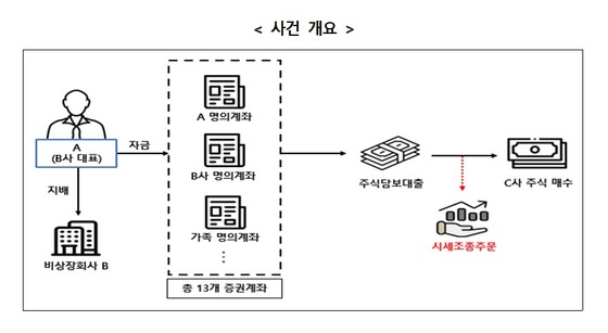 A 씨는 거래량이 적어 시장지배력을 행사하기 용이한 C사 주식을 선정해 혐의 기간 중 거의 매일 시세조종 주문을 제출했으며, 매매차익을 극대화하기 위해 보유하고 있는 C사 주식을 담보로 주식담보대출을 받아 C사 주식을 매수 및 매도하면서 대출을 상환하는 행위를 반복했다.