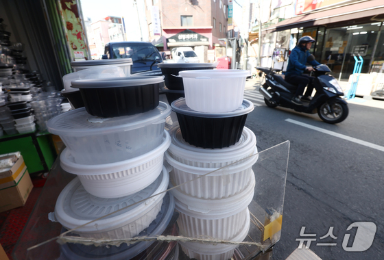 서울 시내의 플라스틱 포장재 업체에 플라스틱 포장 용기가 진열돼 있다.2026.4.7 © 뉴스1 김민지 기자