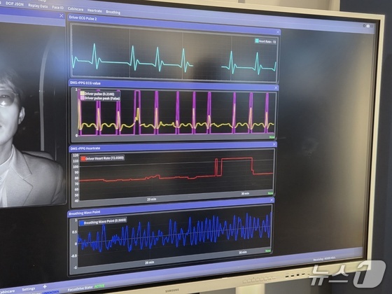 운전자 모니터링 시스템과 삼성전자 모바일 헬스 기술이 적용돼 안전과 편의 등 운전자 경험을 지원하는 '하만 레디 케어'가 운전자 상태를 파악하고 있다.2026. 4. 8/뉴스1 황진중 기자