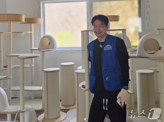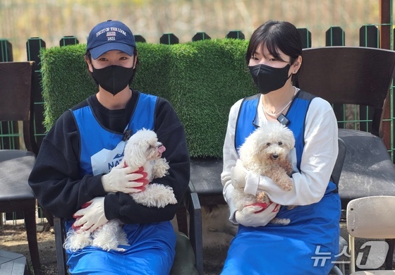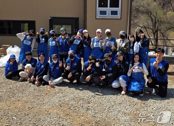 동물보호소 봉사활동을 하고 있는 블루엔젤(내추럴발란스 제공) © 뉴스1