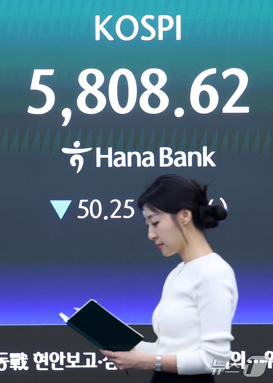 13일 코스피 지수는 전 거래일 대비 50.25p(0.86%) 내린 5808.62에 거래를 마쳤다.