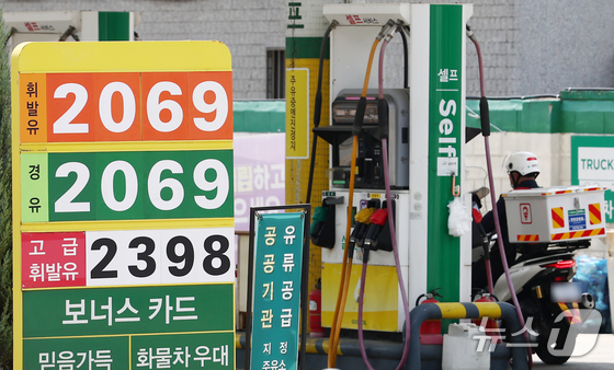 서울 시내의 주유소 유가정보판 모습. 2026.4.14 © 뉴스1 김민지 기자