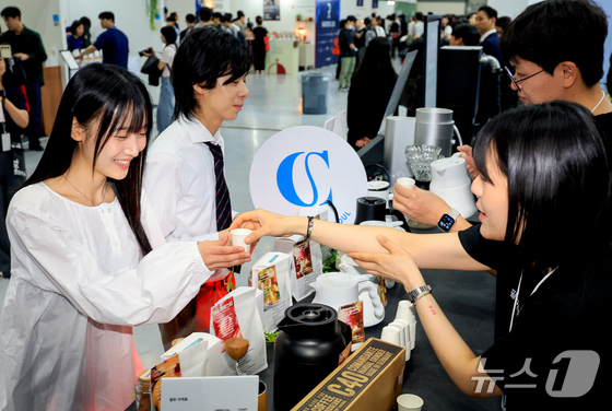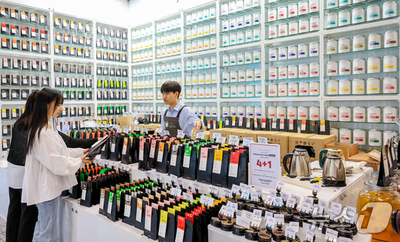 15일 서울 강남구 삼성동 코엑스에서 열린 ‘2026 서울커피엑스포(Coffee Expo Seoul 2026)’를 찾은 관람객들이 티를 시음하고 있다. 2026.4.15 © 뉴스1 이호윤 기자