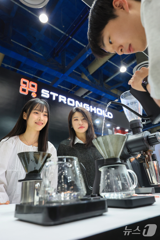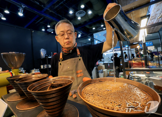 15일 서울 강남구 삼성동 코엑스에서 열린 ‘2026 서울커피엑스포(Coffee Expo Seoul 2026)’에서 부스 관계자가 커피를 만들고 있다. 2026.4.15 © 뉴스1 이호윤 기자