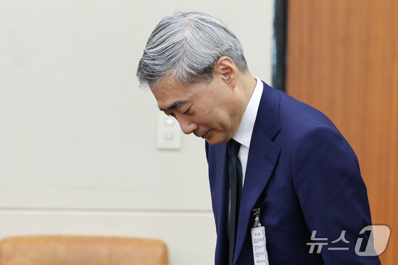 신현송한국은행 총재 후보자가 15일 서울 여의도 국회 재정경제기획위원회에서 열린 인사청문회에서 인사하고 있다. 2026.4.15 © 뉴스1 신웅수 기자