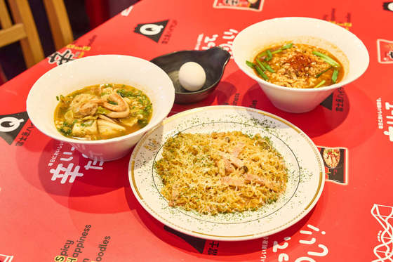 16일 현장에서 맛본 신메뉴는 3종. 매콤하고 고소한 탄탄멘 유형으로 재해석한 신라면과 꾸덕한 본연의 맛에 일본의 온센타마(반숙의 온천달걀)를 조합한 신라면 툼바다. 현지인이 선호하는 해산물 풍미를 깊게 낸 너구리도 있다.