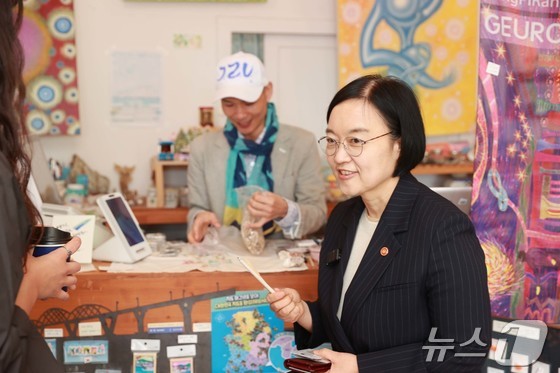 한성숙 중소벤처기업부 장관이 17일 경상남도 통영시 글로컬 상권 현장을 둘러보고있다. (중소벤처기업부 제공. 재판매 및 DB 금지) 2026.4.17 © 뉴스1