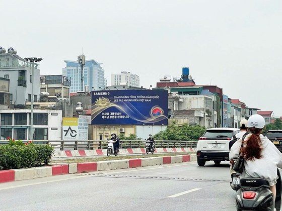 이재명 대통령의 베트남 국빈 방문을 맞아 삼성전자 현지법인이 하노이 도심 주요 거점 곳곳에 대대적인 환영 옥외광고를 설치했다.