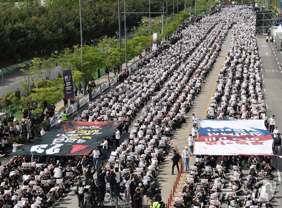 한편 노조는 이날 조합비 일괄 공제인 '체크오프'를 진행하겠다고 밝혔다. 이를 통해 조합원 신분을 공식화하고 5월 파업 참여율을 사업부별로 공개, 5월21일~6월7일 총파업을 준비한다는 계획이다. 실제 파업을 위한 행동에 돌입하면서 사측을 더욱 강하게 압박하는 전략으로 풀이된다.