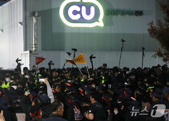 회사는 "현재 파업에 참여하는 인원은 대부분 CU 배송기사들이 아니다. 전국 3500명의 배송 기사 중 화물연대 가입자는 한 자릿수(7~8%) 수준"이라며 "편의점 사업과 관련 없는 인원들에 의한 불법 파업으로 피해가 막대하고 손실에 대해 아무런 책임을 지려 하지 않는다"고 말했다.
