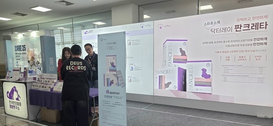 한국반려동물영양연구소가 2026 충북수의사회 연차대회에서 부스를 마련하고 프리미엄 영양제 브랜드 닥터레이를 소개하고 있다. © 뉴스1 한송아 기자