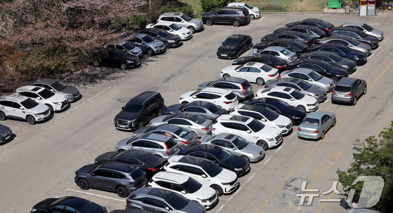 서울 시내 한 아파트 주차장에 차량이 가득찬 모습을 보이고 있다. 2026.4.8 © 뉴스1 김진환 기자