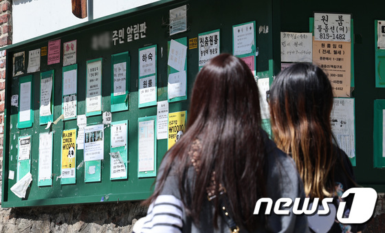 7일 서울의 한 대학가 알림판에 하숙 및 원룸 공고가 붙어 있다. 2023.9.7 © 뉴스1 구윤성 기자
