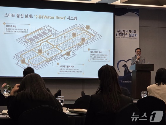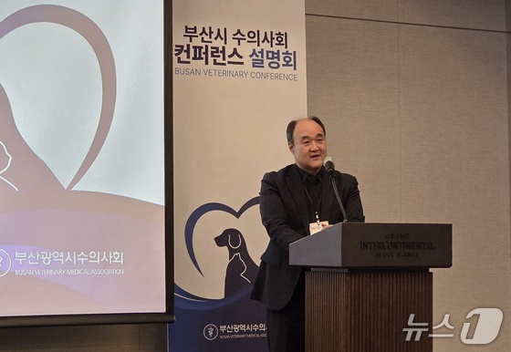 김현욱 부산수의사회 수석 컨설턴트가 2026 부산수의컨퍼런스 설명회에서 발표하고 있다. © 뉴스1 한송아 기자